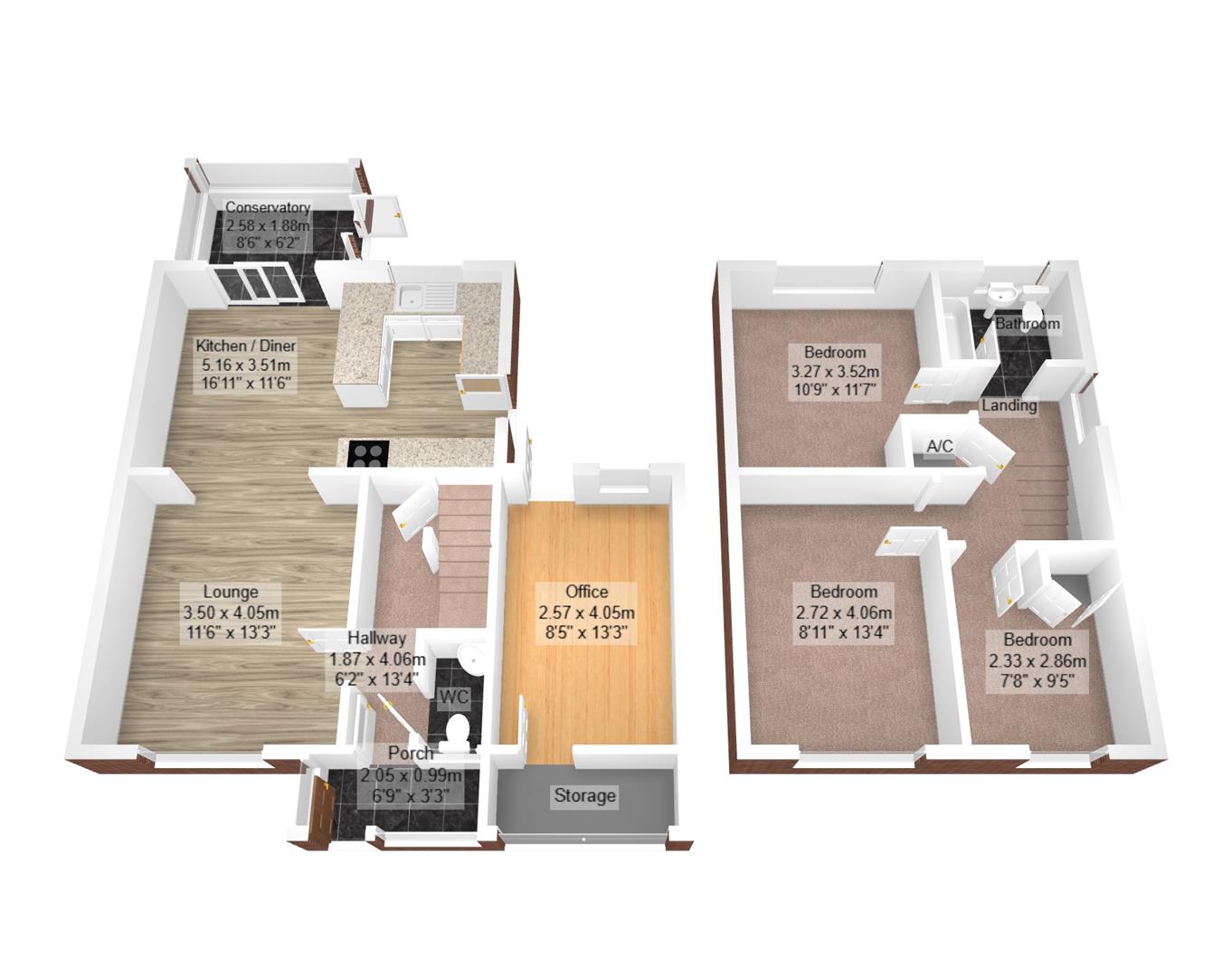 Upstairs, the property continues to impress with three well-proportioned bedrooms, a generous landing and a modern family bathroom. The layout is practical and well suited to both families and first-time buyers alike.