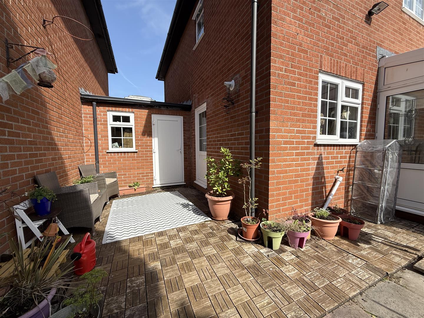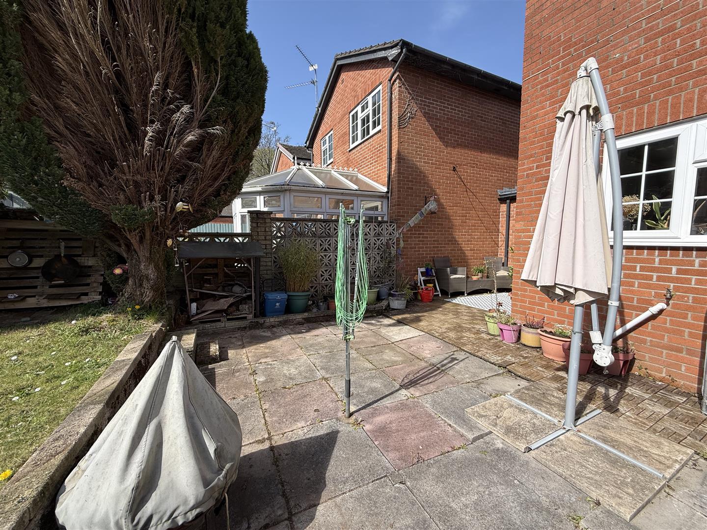 Externally, the rear garden is a standout feature, with a well-maintained lawn and patio area, perfect for outdoor dining and relaxing.