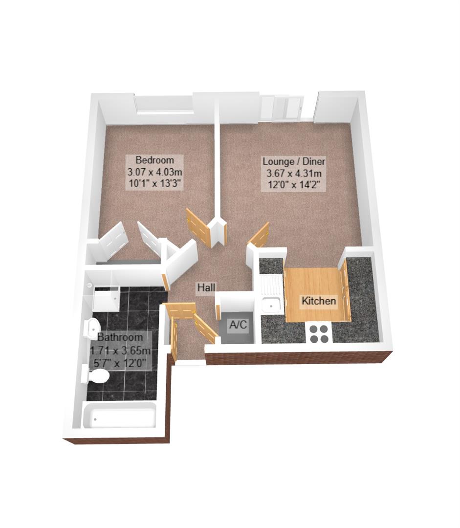 This beautifully presented property features a spacious double bedroom with a built-in wardrobe, a modern bathroom with both a bath and separate shower, and a well-appointed kitchen complete with integrated appliances. The bright and airy living room opens onto a private balcony, perfect for relaxing or entertaining.