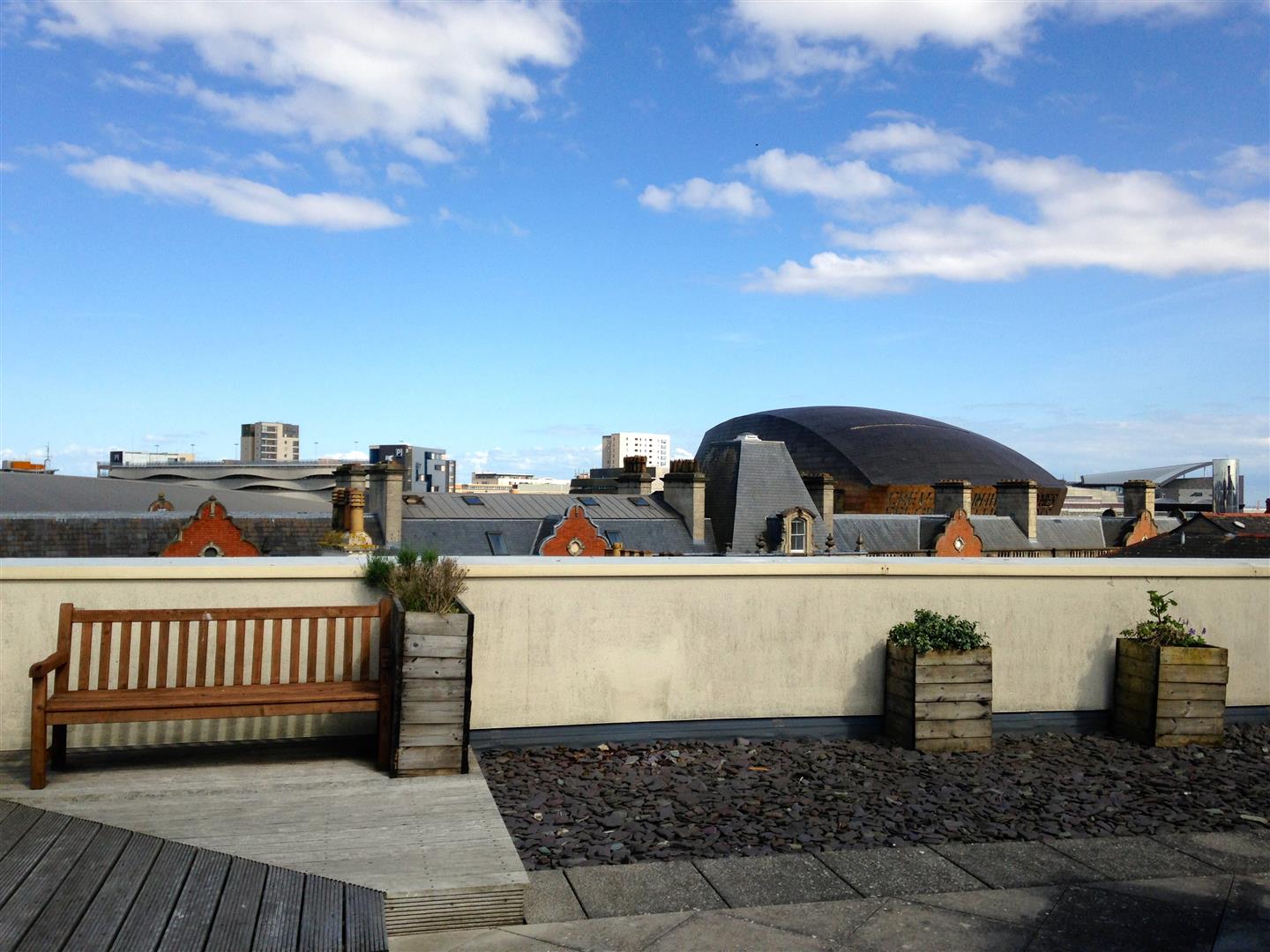 Further benefits include an allocated parking space and access to a communal roof terrace boasting panoramic views over Cardiff Bay.