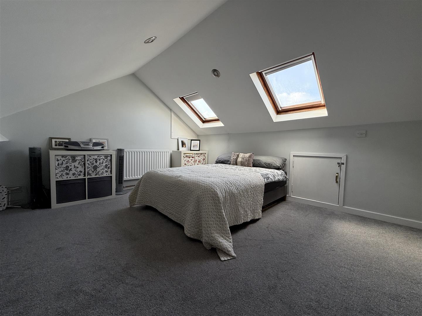 To the first floor are three bedrooms and a modern family bathroom, with stairs rising to a converted attic providing a generous fourth bedroom.