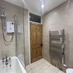 To the first floor there are three double bedrooms with wood flooring and cast iron fireplaces, and a modern family bathroom with a shower over the bath.